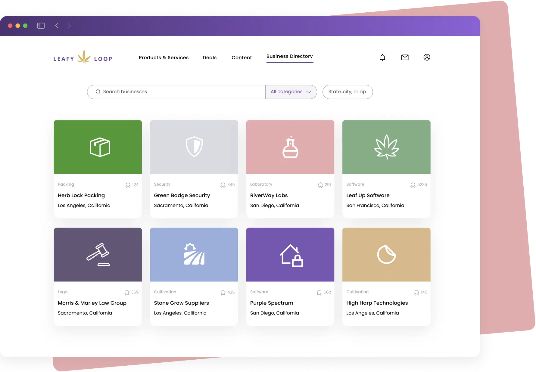 From cultivation technology and storefront supplies to legal services and security personnel, LeafyLoop helps you find the allies you need across 22 ancillary categories.